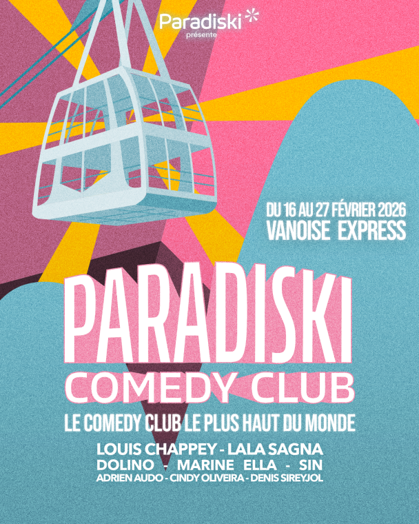 Pendant les vacances de février, l’humour prend de la hauteur avec une version aérienne de stand-up inédite en son genre : le Paradiski Comedy Club, en collaboration avec le Métro Comedy Club, référence du stand-up urbain et mobile dans les rames du métro parisien. Les mythiques cabines du téléphérique du Vanoise Express, perchées à 380 m au-dessus du sol, se transforment en scènes de spectacle pour les skieurs.